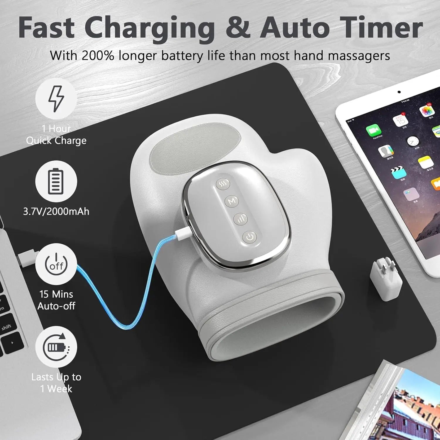 Soothing heat warms your hand, boosts blood flow, loosens stiffness, and melts tension for spa-like relief at home.